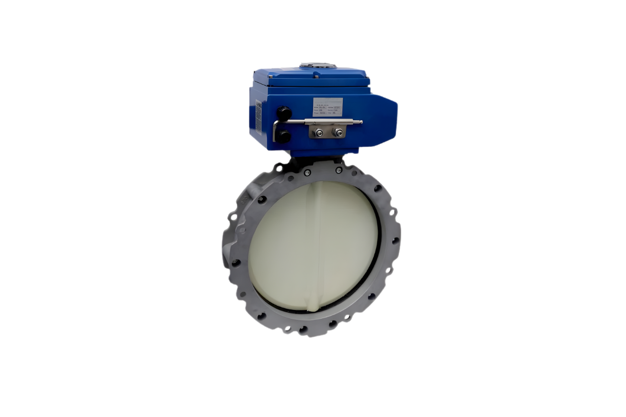 Motorized Actuator Operated PFA / FEP Line Butterfly Valve Wafer End