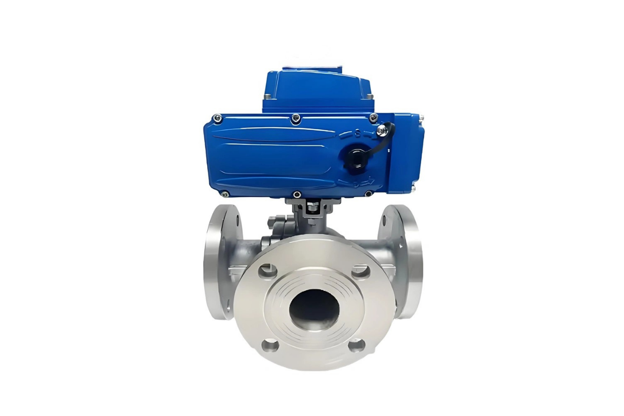 Motorized Actuator Operated Three Way Ball Valve Flange End