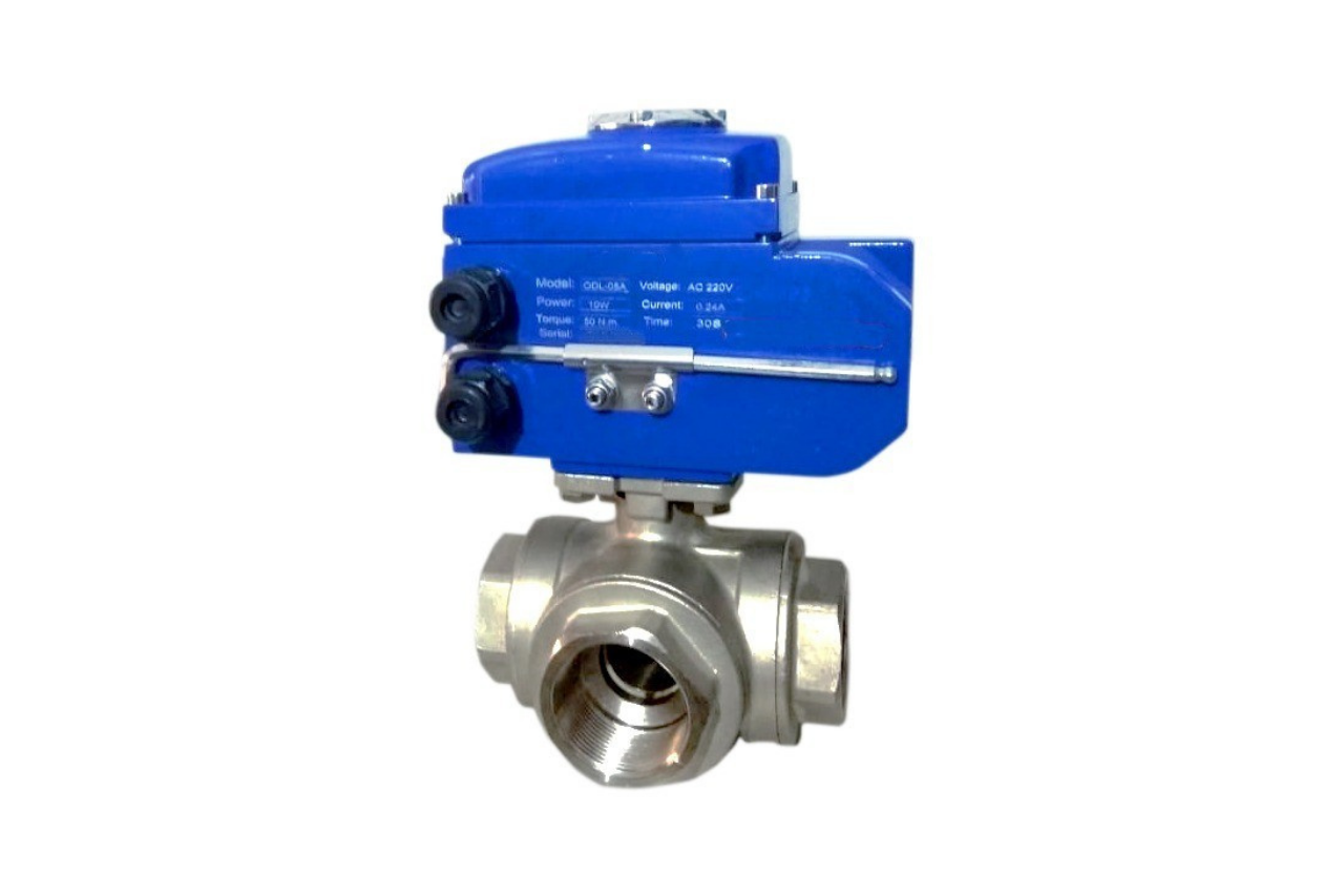 Motorized Actuator Operated Three Way Ball Valve Screwed End