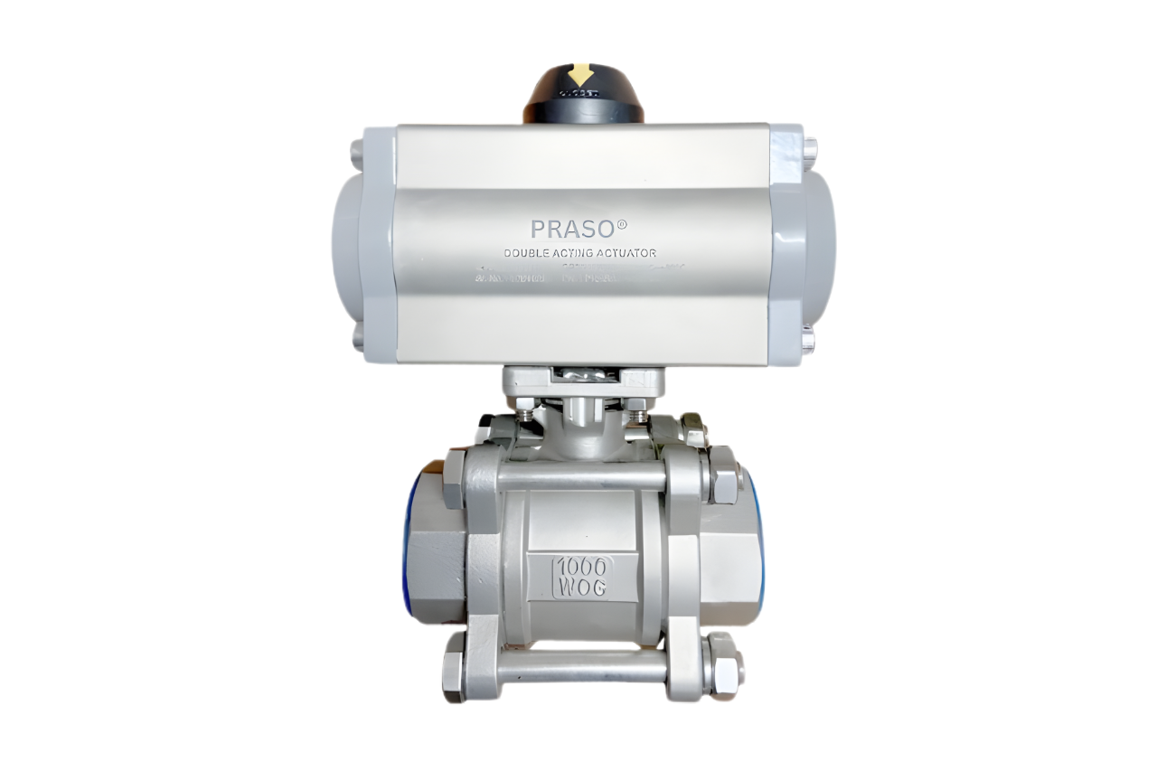 Pneumatic Actuator Operated Three Piece Ball Valve Screwed End